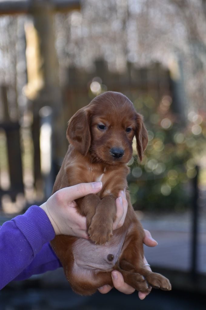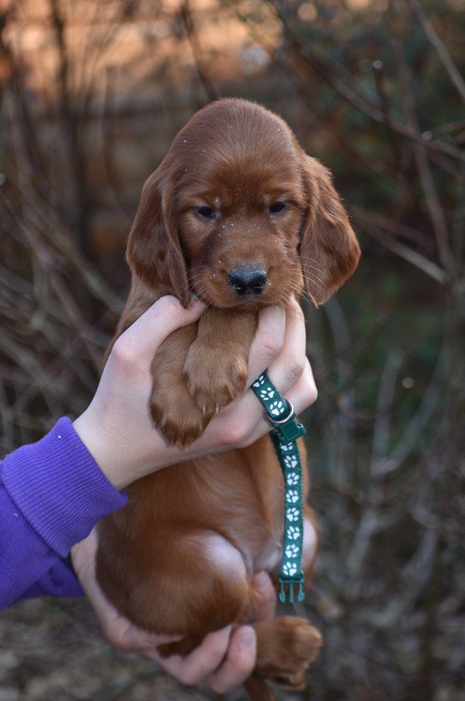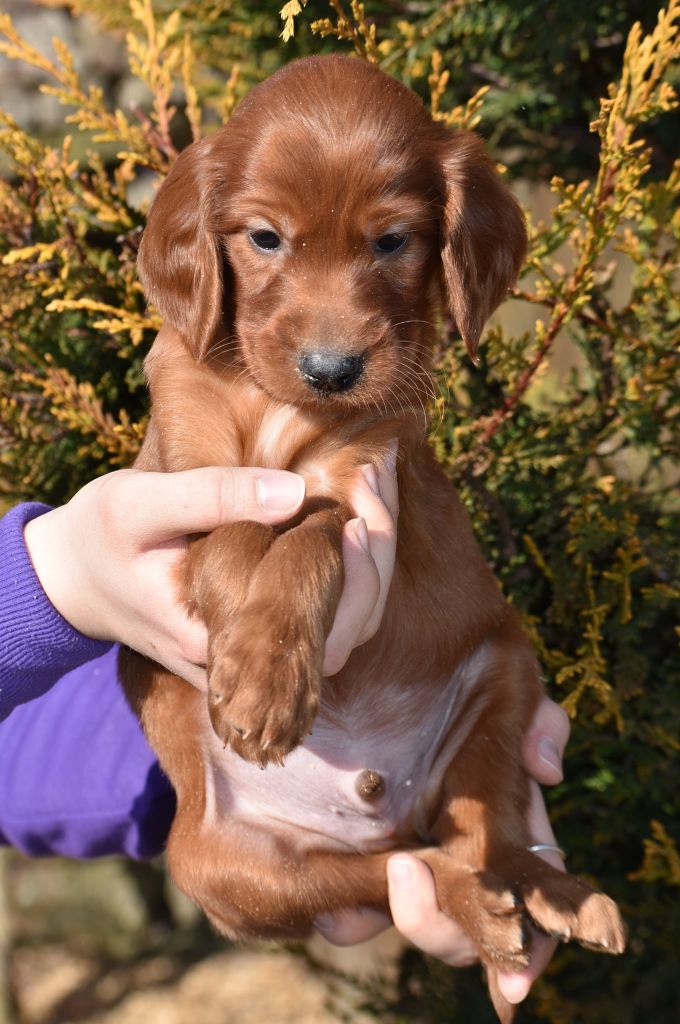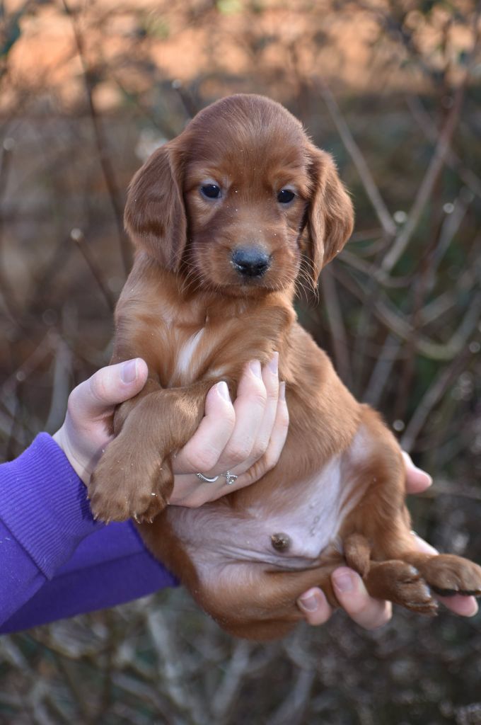 Nous sommes heureux de vous annoncer la naissance des petits setters irlandais rouge nés le 02/02/2022 dont 3 femelles et 5 mâles. Réservation ouverte" 3 mâles de disponibles.